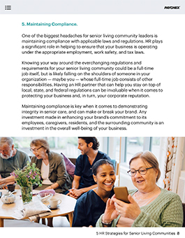 Download "5 HR Strategies for Senior Living Communities" today to learn the five ways modern HR strategies can help your expanding business make a seamless and successful transition to the future of senior care.